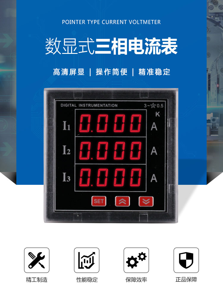 数显三相交流电流电压表WYK72-AI3 AC5A