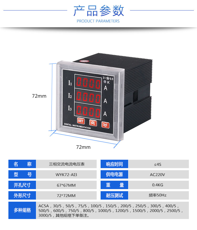 数显三相交流电流电压表WYK72-AI3 AC5A
