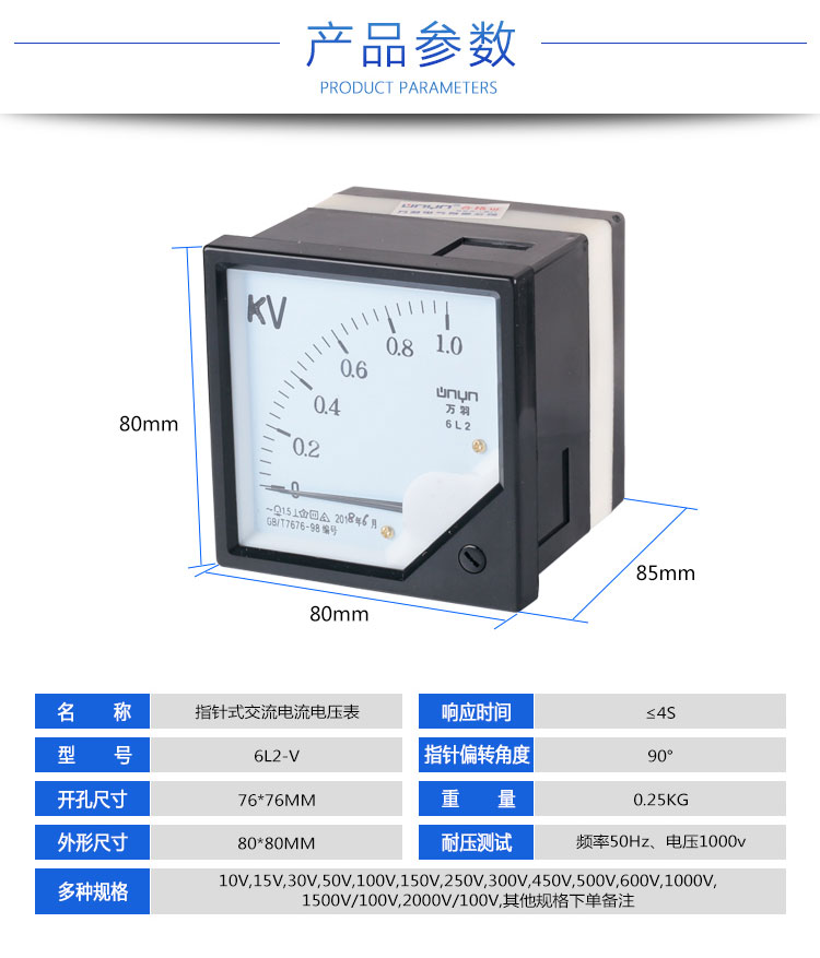 指针式交流电流电压表6L2-V 1000V 500V 450V