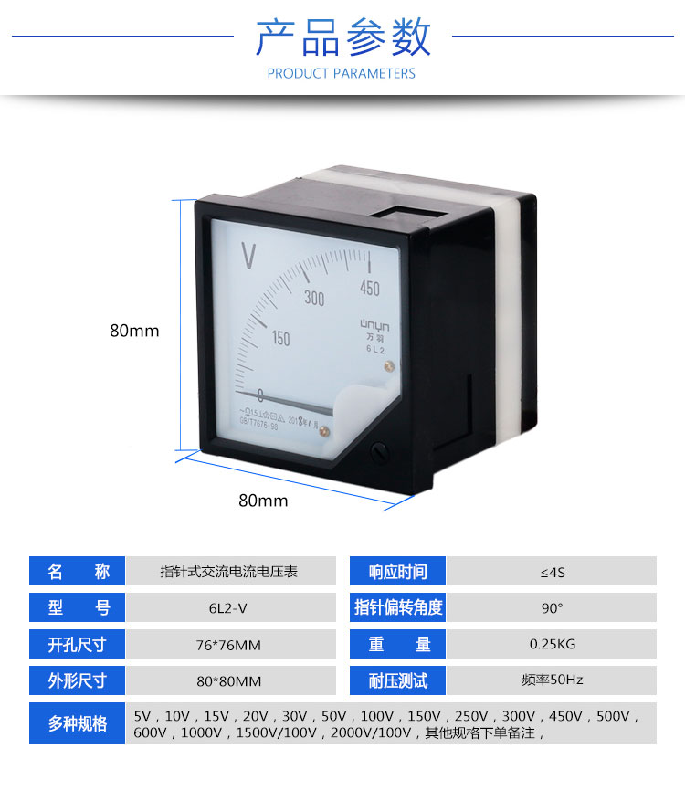 指针式交流电流电压表6L2-V 450V机械式电压表