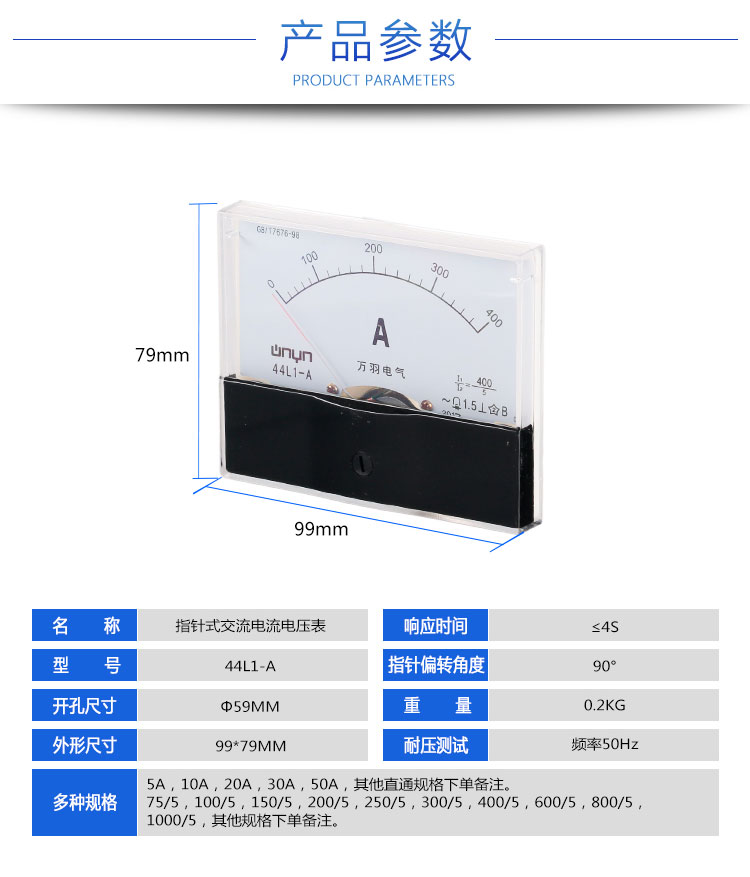 指针式交流电流电压表44L1-A 400/5机械式电流表