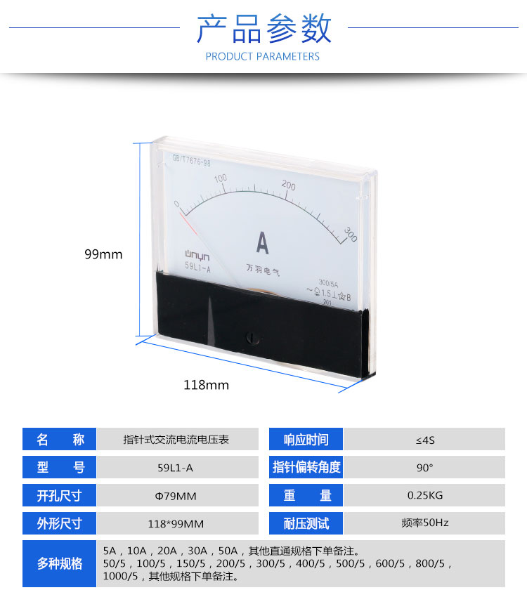 指针式交流电流电压表59L1-A 300/5机械式电流表