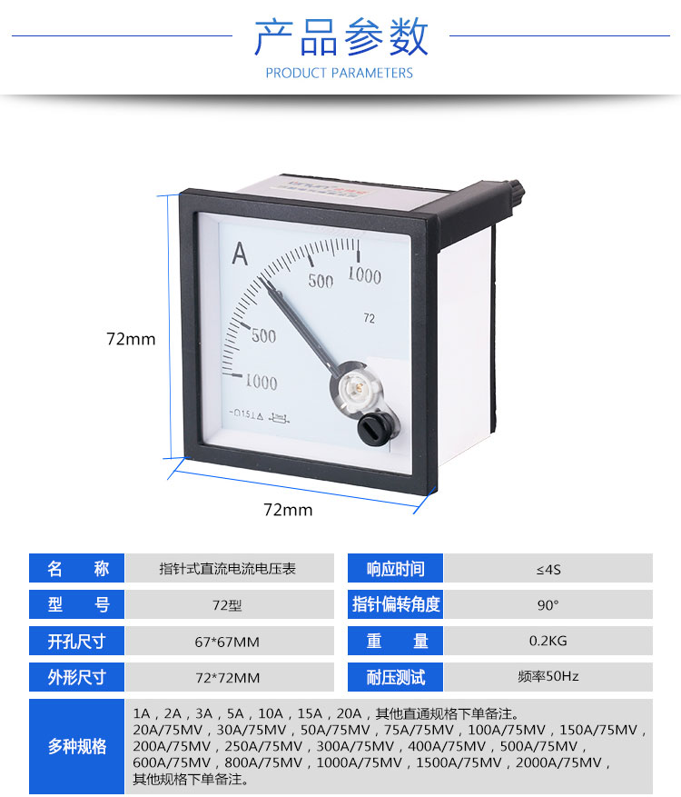 下一篇:指针式直流电流电压表72 50A/75mV 50A/10V