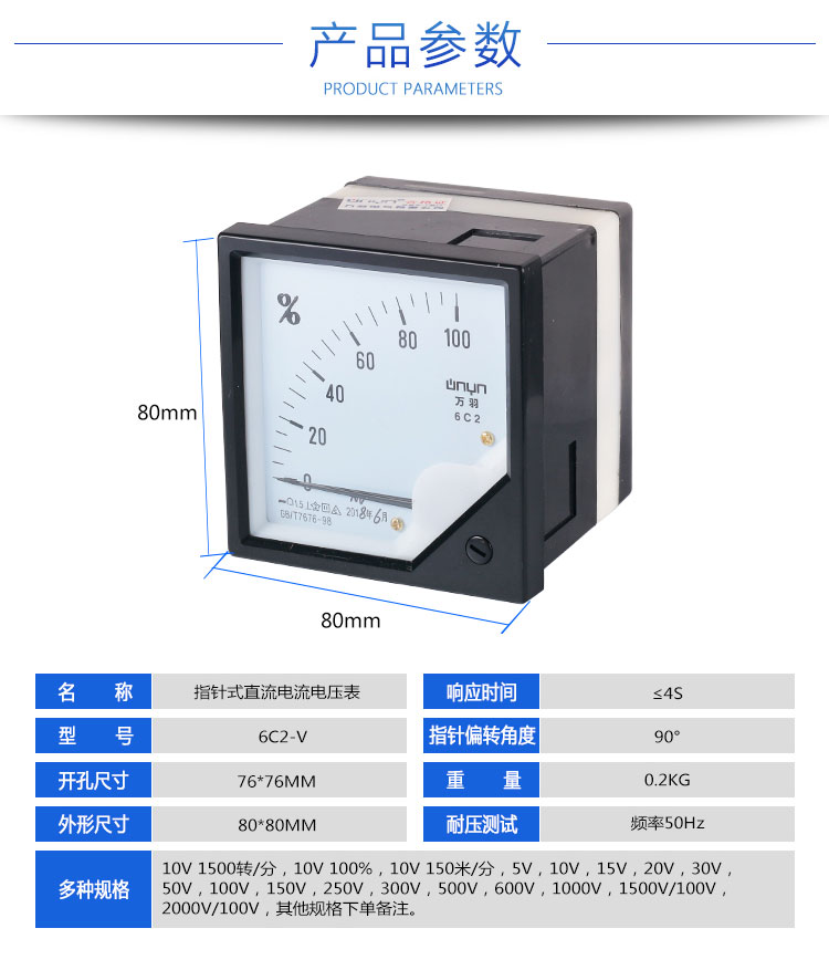 下一篇:指针式直流电流电压表 6C2-A ±1000A/75mV