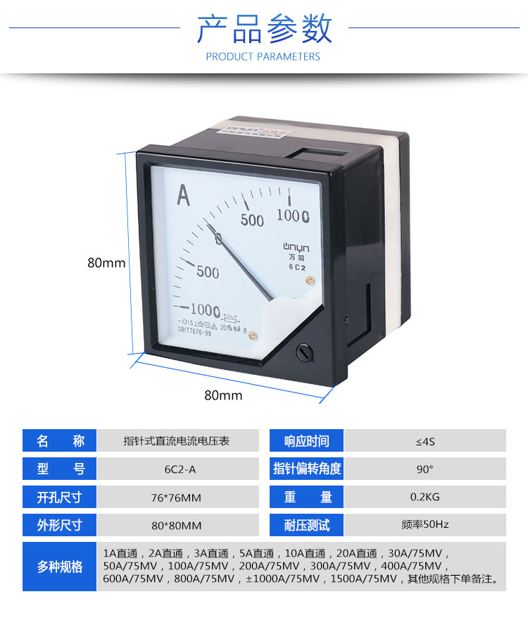 指针式交流电流电压表6L2-V 1000V 500V 450V