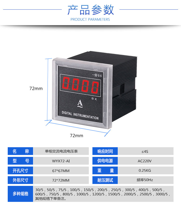 数显三相交流电流电压表WYK72-AI3 AC5A