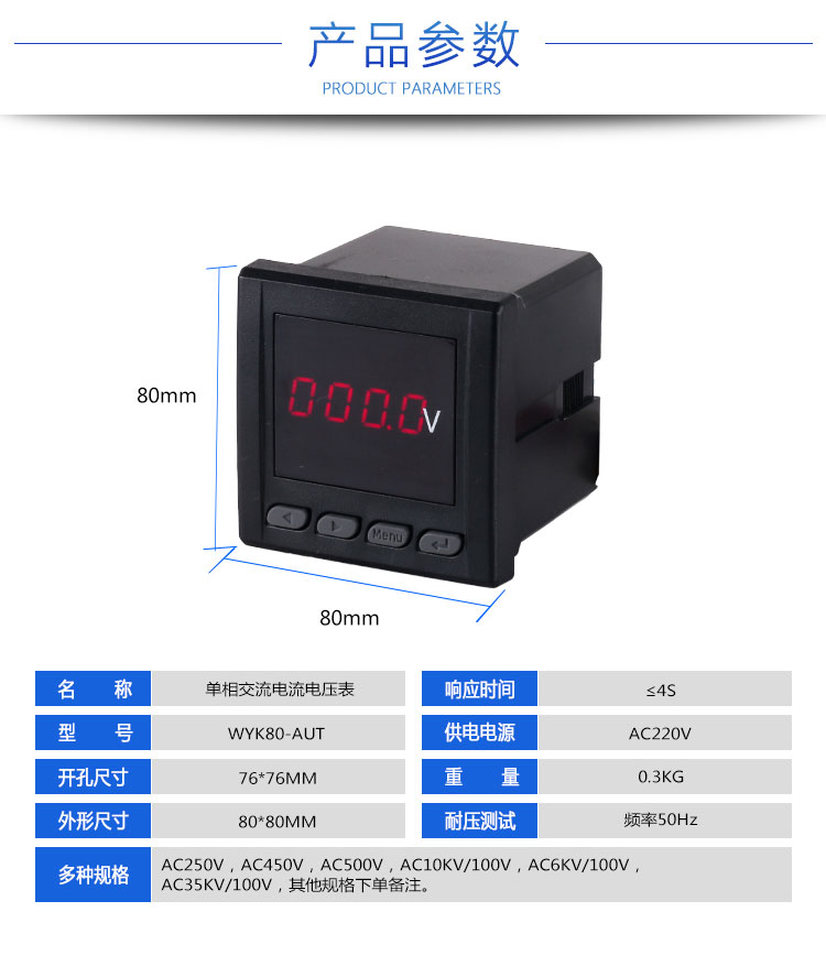 数显三相交流电流电压表WYK80-AU3T AC450V