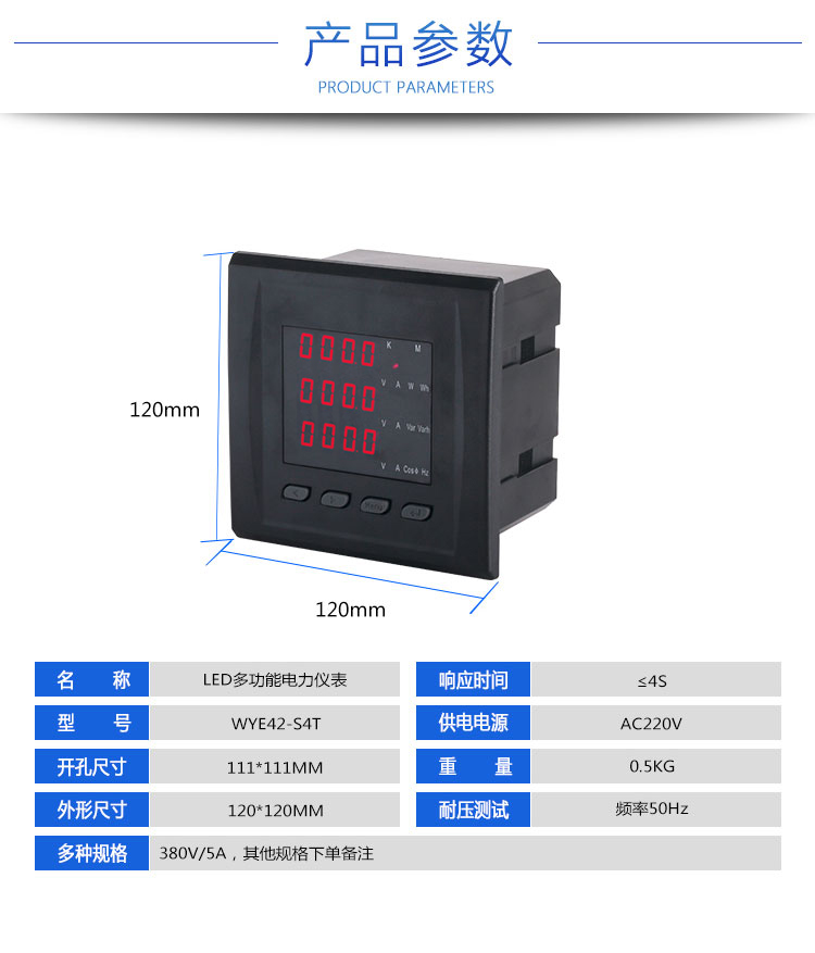上一篇:数显LED多功能电力仪表WYE72-S4T 380V 5A