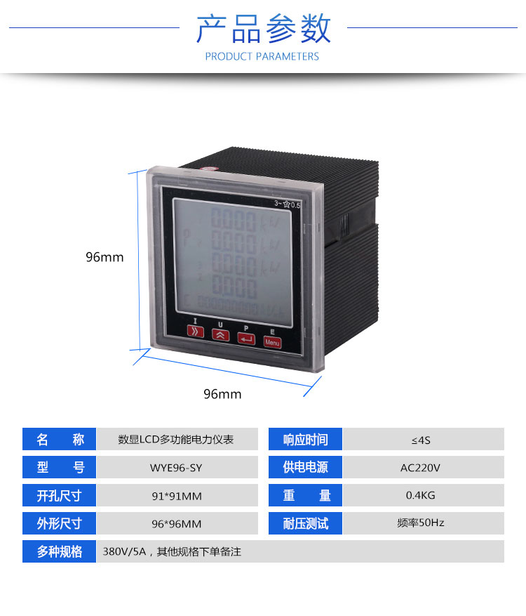 数显三相功率因数表WYX96-H380V/100V/220V