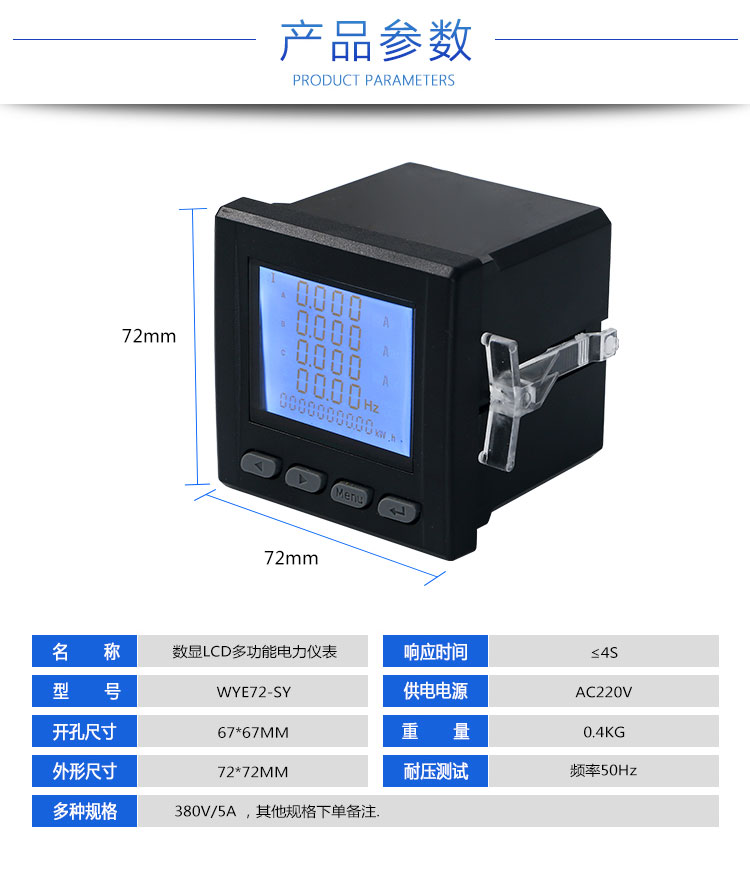 数显三相功率因数表WYX72-H380V/220V/100V