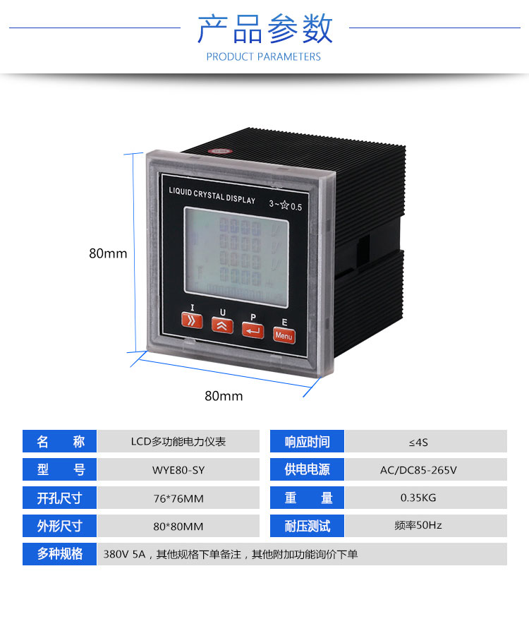 上一篇:LED多功能电力仪表WYE80-S4 380V 5A